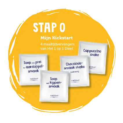 Deze stap kun je zien als de kickstart van je nieuwe leefstijl. Je krijgt vier lekkere maaltijdproducten van Het 1 op 1 Dieet, verspreid over de dag. Dit betekent dat je lekker, voedzaam én caloriearm kan eten, waardoor je direct succesvol kunt afvallen in deze eerste fase.